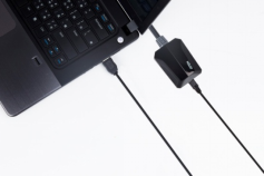 上图为CV211与连接的Windows笔记本电脑,通过对比可以看到该设备设计精巧,便于随身携带。