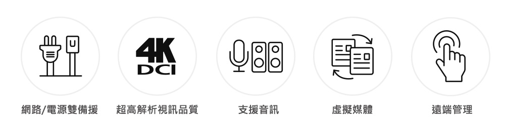 CN9950 KVM over IP远程电脑管理方案可让使用者从远程访问电脑或工作站的视频、音频及虚拟媒体信号,且近端及远程控制端上支持DisplayPort分辨率高达4K DCI(4096 x 2160)@ 30 Hz。 CN9950配备先进的FPGA图形处理器,可提供更好的影像和视频质量,以增强用户体验,且CN9950符合 RS-232 规范进行串口控制。