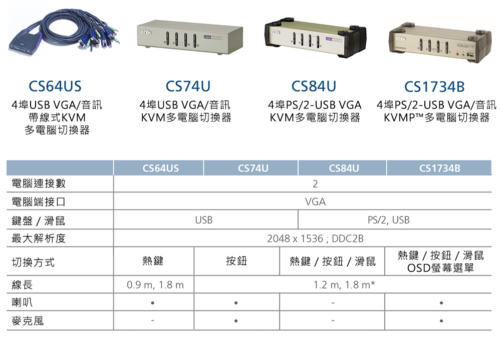 1 x CS84U 4端口PS/2-USB KVM多电脑切换器