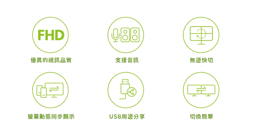 鼠标划屏快速切换(Boundless Switching)技术- 只需将鼠标光标移至或超过单一分割屏幕界线,即可将键盘及鼠标的控制,直接快速地切换至该分割屏幕画面显示的设备