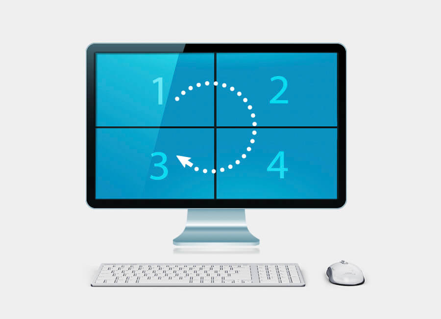 无边快切(Boundless Switching)技术 – 只须将鼠标光标移至或超过多窗口画面中单一分割窗口界线,即可将键盘及鼠标的控制,直接快速地切换至该分割窗口画面显示的设备,并支持在菊链串接的各台屏幕之间切换