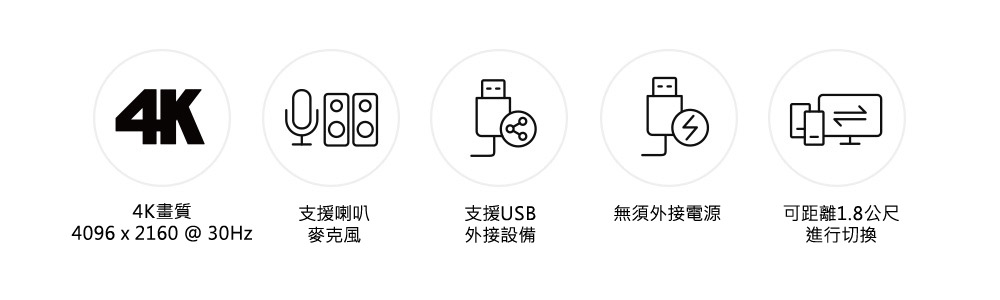 跨平台支持 – Windows、Mac和Linux,要在电脑间切换时,只需按下内建的外接式切换按键,即可直观地操作切换。