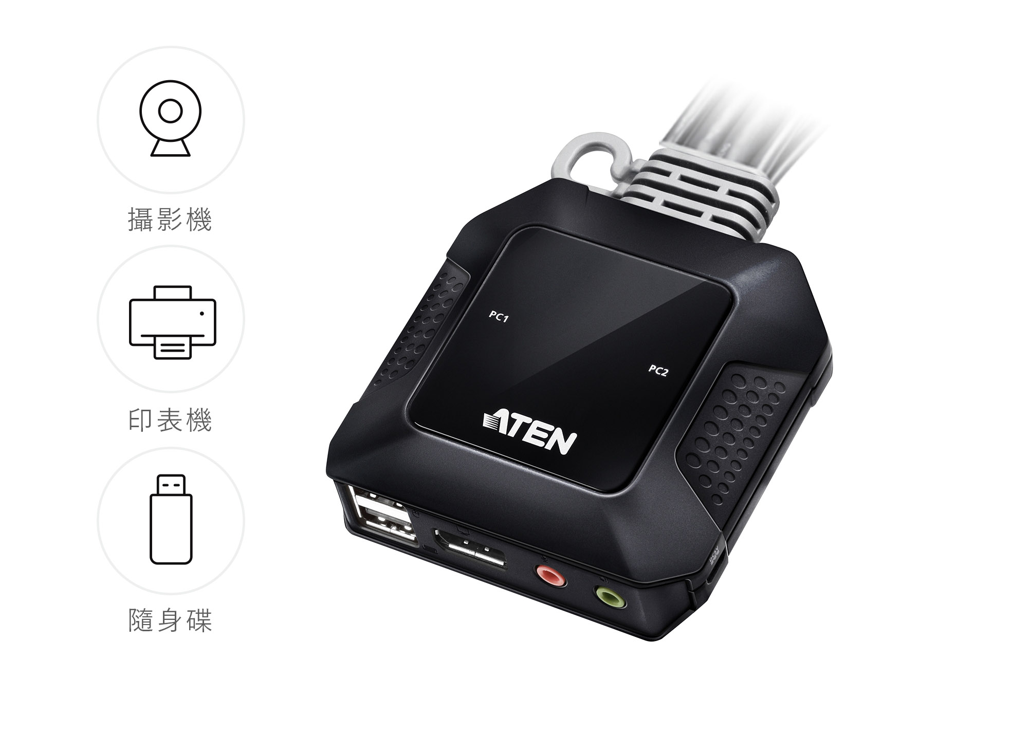 1x CS52DP 2端口USB-C DisplayPort 混合带线式KVM多电脑切换器